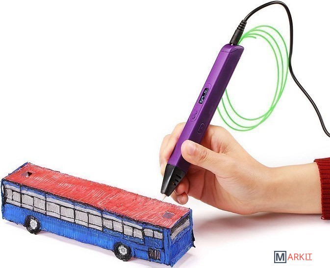 OLED-дисплей, возможность регулирования температуры нагрева и интенсивности подачи пластика, питание как от сети, так и от USB, готовность к работе уже через 2 минуты.