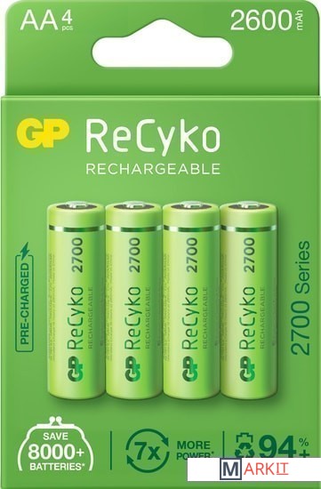 Markit » Батарейки, аккумуляторы, зарядные » Аккумулятор GP ReCyko AA 2600mAh 4шт.