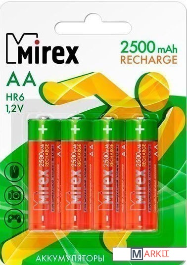 Markit » Батарейки, аккумуляторы, зарядные » Аккумулятор Mirex AA 2500mAh 4 шт HR6-25-E4