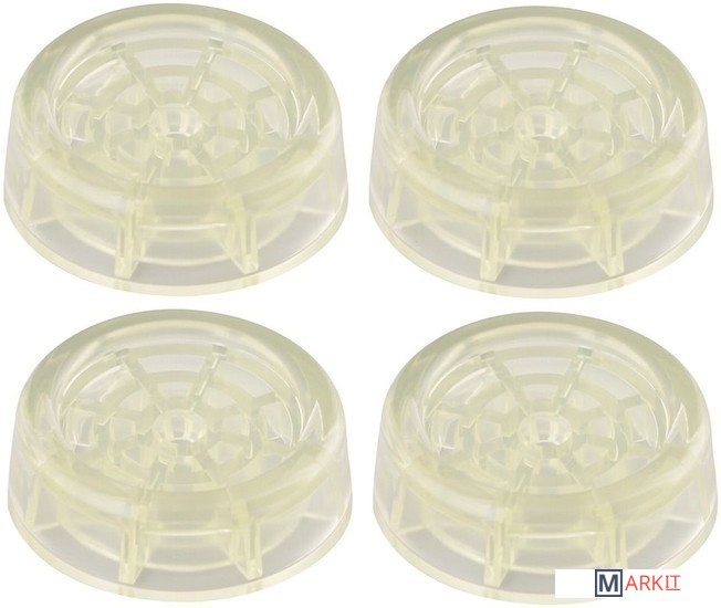 Применение подставок позволяет значительно снизить нагрузку ножек техники на напольное покрытие, керамическую плитку, деревянные полы, а также предотвращает скольжение стиральной машины при работе в режиме отжима. Снижение вибрации при работе техники достигается оптимальной формой подставок и использованием высокопрочного материала. Изготовлены из ПВХ (поливинилхлорид).