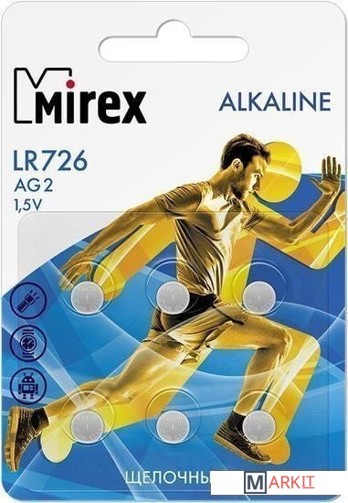 Батарейка Mirex LR726 производится по специальной технологии “AntiLeaX», что при соблюдении условий хранения и эксплуатации сводит риск вытекания электролита практически к нулевым показателям. Элемент LR726 взаимозаменяем с подходящими ему по форме аналогами, которые располагают маркировкой «AG2» или «LR59» на своём корпусе.