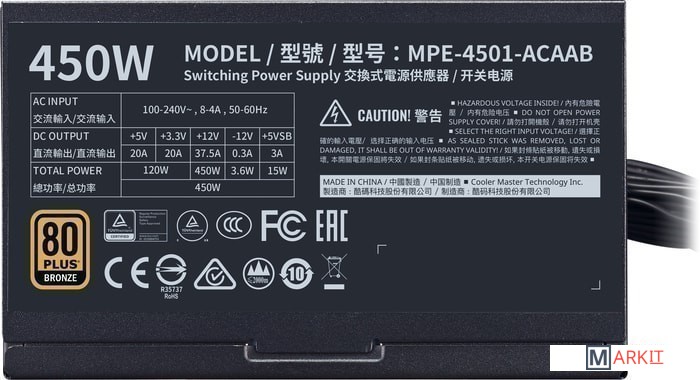Markit » Блоки питания » Блок питания Cooler Master MWE 450 Bronze V2 MPE-4501-ACAAB-EU