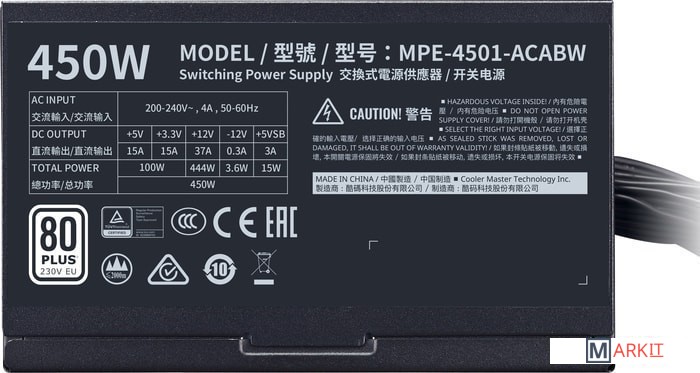Markit » Блоки питания » Блок питания Cooler Master MWE 450 White 230V V2 MPE-4501-ACABW-EU