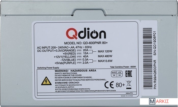 Markit » Блоки питания » Блок питания Qdion QD-650PNR 80+