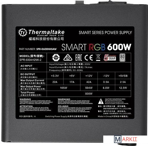 Markit » Блоки питания » Блок питания Thermaltake Smart RGB 600W SPR-0600NHSAW