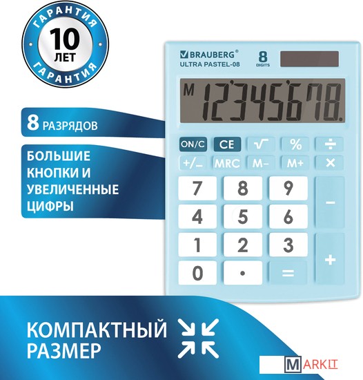 Markit » Калькуляторы » Бухгалтерский калькулятор BRAUBERG Ultra Pastel-08-LB 250513 (голубой)