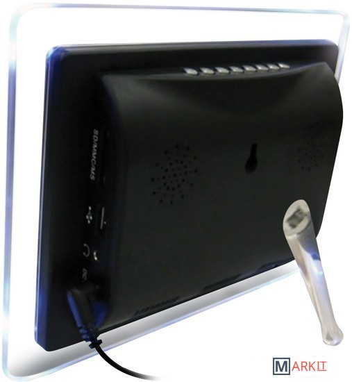 Digma PF-790 – цифровая фоторамка с экраном 7,0” (разрешение 800 x 480 точек). Поддерживает просмотр фотографий формат JPEG, проигрывание музыкальных файлов MP3, WMA и воспроизведение видео файлов AVI, MPEG1/2, MPEG 4 (Divx4.0, Divx5.0, Xvid).
