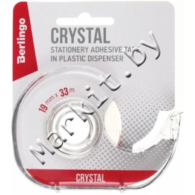 Диспенсер для клейкой ленты канцелярской с лентой Berlingo, 100 x 70 x 25 мм, для ленты шириной 19 мм, кристально-прозрачный Код: 33308