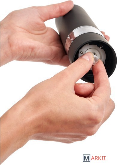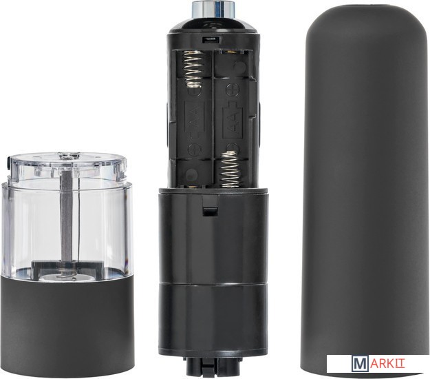 Электрический измельчитель для специй поможет быстро перемолоть соль, перец и другие твердые специи. С его помощью хозяйка сможет избежать потери вкусов и ароматов любимых специй, хранимых в открытом виде. Электрическая перцемолка работает от 4 батареек АА и измельчит пряности вмиг по одному нажатию кнопки. Керамический жернов измельчителя обеспечивает более тонкий и однородный помол и работает тише, чем стальной. Этот кухонный атрибут можно использовать как для одного вида специй, так и для душистых смесей. Утончённый и сдержанный дизайн перцемолки впишется в любое оформление рабочей зоны на кухне. Электрический измельчитель станет одним из незаменимых аксессуаров для каждой хозяйки.• Измельчитель с легкостью перемелет перец, крупную соль и твердые специи.• Работает от 4 батареек типа АА.• Керамический жернов мелет специи тише, чем стальной механизм.