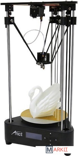 Anet A4 - большой и надежный дельта-принтер с модульной структурой, который необходимо самостоятельно собрать. Подойдет для знатоков 3D печати, т.к. настраивать и калибровать его придется самостоятельно. Тем не менее его структура такова, что сборка не займет больше 10 минут.Точность позиционирования головки и стабильность печати обеспечиваются крепкой стальной рамой и металлическим печатным столом. Также вы можете регулировать натяжение ремня подачи с помощью регулирующего винта.