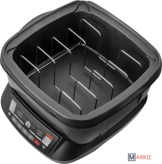 18 функций:Sous Vide;Быстрое обжаривание;Запекание;Гриль;ВыпеканиеВарка;Жарка;Томление;Быстрый бульон;Фритюрница;Hot Pot;Приготовление на пару;Варка риса;Фондю;Йогурт;Попкорн;Поддержание температуры;Ручная настройка.Дисплей.Цифровой контроль температуры.Принадлежности:- отпариватель;- решетка sous vide;- 6 вилок для фондю.Длина кабеля питания: 1 м.Размеры: 300x345x340 мм.Вес: 4 кг.