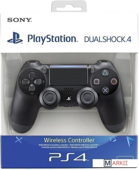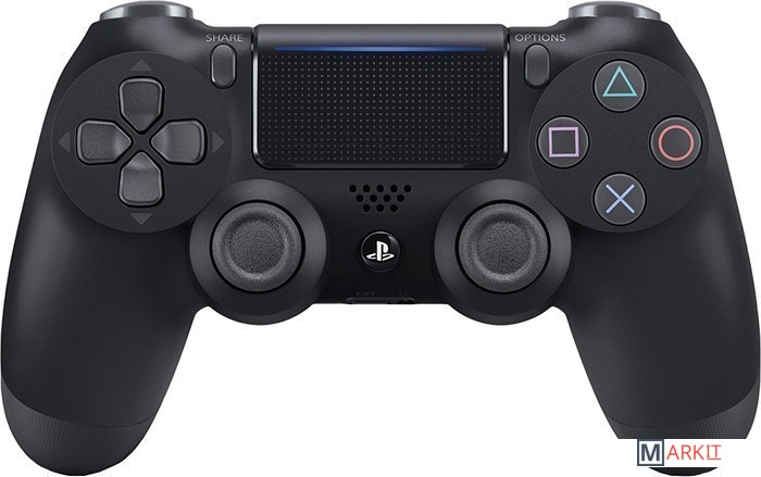 Беспроводной геймпад Dualshock4 второго поколения со встроенным акселерометром, сенсорной панелью, цветной световой панелью (отображает важные события и помогает камере PlayStation Camera отслеживать положение геймпада во время игры), а также с кнопкой SHARE для быстрой публикации достижений. Предназначен для игровой консоли Sony Playstation 4. Возможен захват перемещения геймпада в 6 направлениях