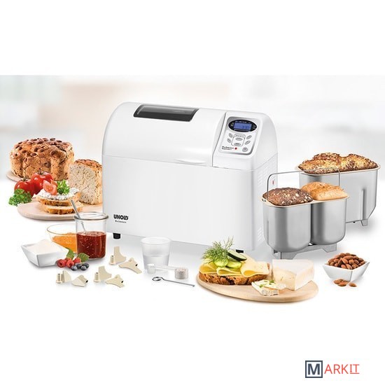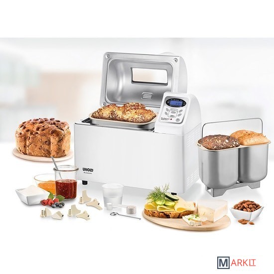 Хлебопечка Unold 68511 с 9 автоматическими программами и возможностью выпекания 2 хлебов одновременно.