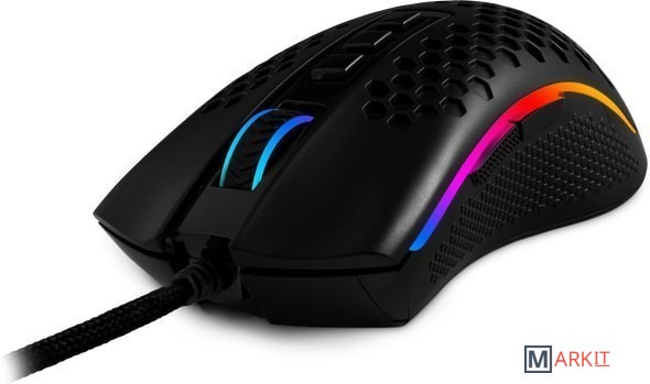 Высококлассный оптический сенсор Pixart 3327, качественные переключатели Huano с ресурсом в 20 млн нажатий, невероятно гибкий и прочный кабель. Лёгкий вес, красивая подсветка делают эту модель прекрасным выбором!Оптические переключатели с высокой скоростью откликаШирокое прорезиненное колесо прокрутки шириной 8 мм с подсветкойУдлиненные тефлоновые ножкиГибкий тканевый кабель