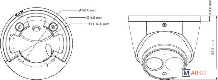 Мин. освещённость в ч/б режиме 0 лк  (ИК вкл.)