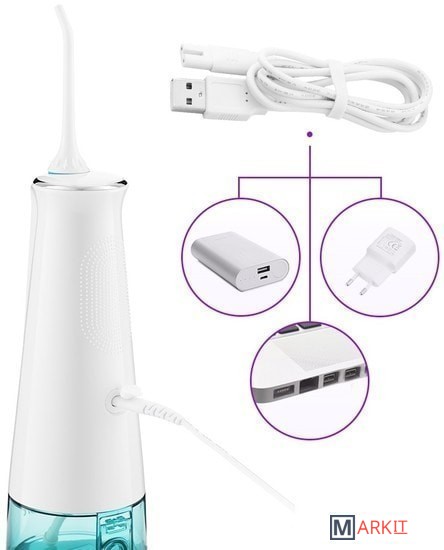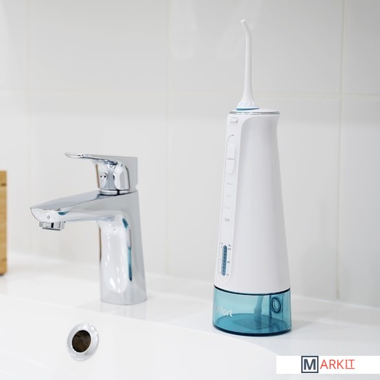 Во время работы у ирригатора подсвечивается резервуар для воды.Размер устройства: 73.2 x 73.2 x 204 мм.Вес: 0.4 кг.