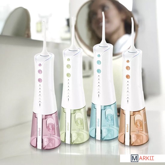 Тщательный уход за полостью ртаИрригатор Kitfort КТ-2925 - это простой и эффективный прибор для чистки полости рта. Тонкая и сильная струя воды под давлением от 2 до 8 бар вымывает остатки еды, налёт из межзубного пространства и пародонтальных карманов, а также массажирует дёсны.Для дома и поездок!Модель КТ-2925 предназначена для использования дома всеми членами семьи, а также его можно брать с собой в путешествия или на работу. Благодаря водонепроницаемому чехлу, который идёт в комплекте, он компактно помещается в сумке или чемодане.6 режимов работы: «Норма», «Мягко», «Пульс», «Точечно», «Пауза», «Вручную»Кнопочное управление позволяет настроить один из 6 режимов работы. В режиме «Вручную» силу струи вы выбираете сами, а прибор запомнит настройки для следующего использования этого режима. Ирригатор автоматически отключается после 2 минут использования.Время работы ирригатора без подзарядки – до 160 минут!Заряжать прибор с помощью USB-шнура можно от компьютера или через сетевой адаптер, который наверняка есть у вас дома. Шнур можно подключать напрямую в моторный блок ирригатора или в базу для зарядки и хранения насадок. Для полной зарядки хватает 5-6 ч.Эффектная индикация процесса зарядки от базыВо время зарядки ирригатора индикатор на моторном блоке будет мигать красным. Когда устройство полностью зарядится, мигание прекратится, и индикатор будет постоянно гореть зелёным.1 прибор – 2 пользователя!В комплекте с ирригатором идут 2 классические струйные насадки, например, для двух членов семьи. На них есть цветные уплотнительные кольца, чтобы не перепутать. На держателе насадок есть поворотный механизм, с помощью которого насадка крутится на 360°.Удобное наливание водыУ резервуара для воды, ёмкостью 260 мл, есть специальное отверстие для залива воды, которое закрывается крышкой с уплотнительным кольцом. Резервуар полностью съёмный, что также удобно при мытье прибора.Чтобы ничего не потерять!Подставка ирригатора выступает не только, как база для зарядки, но и для удобного хранения насадок. Так они не потеряются, всегда будут под рукой и не захламят ящики и полки в ванной.С заботой о вашем здоровье!Ирригатор станет идеальным дополнением в комплексном уходе за здоровьем ваших зубов, дёсен и полости рта в целом. Если использовать специальные растворы, то прибор станет отличной профилактикой кариеса, повысит эффективность лечения зубов и дёсен.