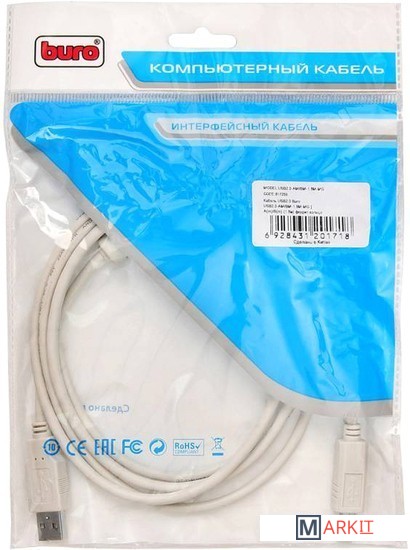 Markit » Кабели, адаптеры, разветвители » Кабель Buro USB2.0-AM/BM-1.8M-MG