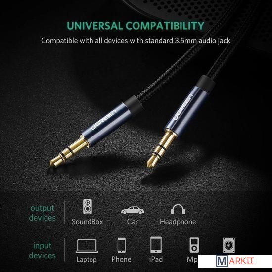 Markit » Кабели, адаптеры, разветвители » Кабель Ugreen AV112 3.5 мм - 3.5 мм (1 м, черный/синий)
