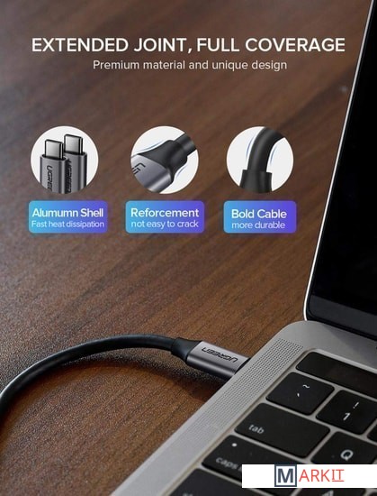 Markit » Кабели, адаптеры, разветвители » Кабель Ugreen US161 50751 USB Type-C - USB Type-C (1.5 м, черный/серый)