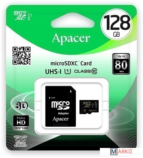 Markit » Карты памяти » Карта памяти Apacer microSDXC AP128GMCSX10U1-R 128GB (с адаптером)