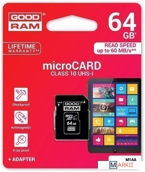 Markit » Карты памяти » Карта памяти GOODRAM microSDXC (Class 10) UHS-I 64GB + адаптер [M1AA-0640R11]