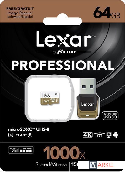 Markit » Карты памяти » Карта памяти Lexar microSDXC UHS-II 64GB + кардридер [LSDMI64GCBNL1000R]