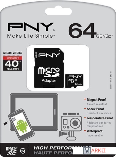 Markit » Карты памяти » Карта памяти PNY microSDXC High Performance (Class 10) 64GB (P-SDUX64U1-GE)