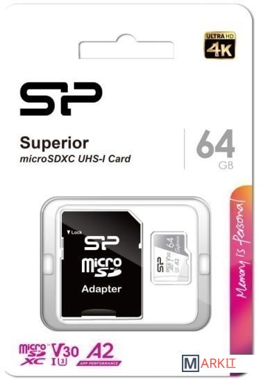 Markit » Карты памяти » Карта памяти Silicon-Power Superior microSDXC SP064GBSTXDA2V20SP 64GB (с адаптером)