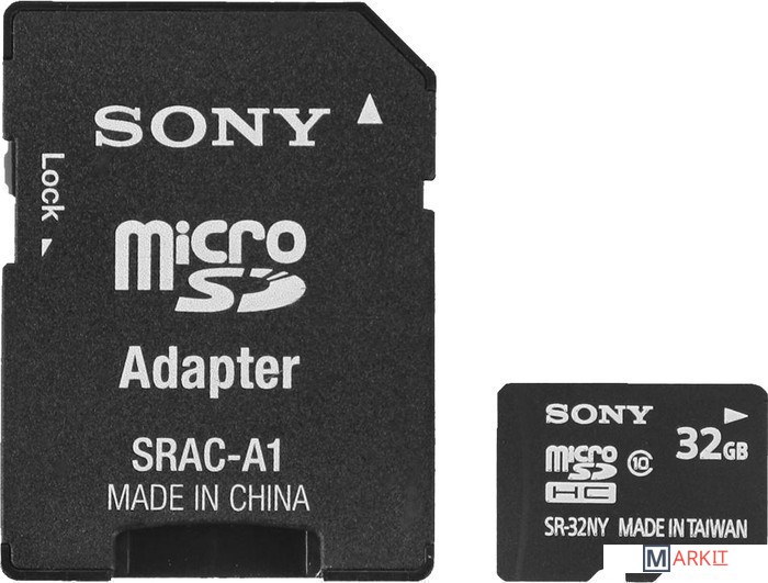 Markit » Карты памяти » Карта памяти Sony microSDHC (Class 10) 32GB + адаптер (SR32NYAT)