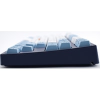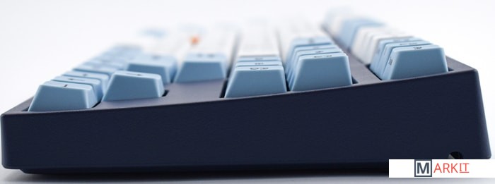 КЛАВИАТУРА БЕЗ КИРИЛЛИЦЫТип: тихий линейныйСила нажатия: 45 грамм (легкие)Длина пути: 3.7 мм (1.9 мм до срабатывания)Данная модель представлена в тёмно-синем окрасе с белыми и светло-голубыми клавишами, расцветка выглядит свежо и воздушно. Клавиатура собрана добротно и монолитно, а сочетание высококачественных PBT клавиш с переключателями Cherry MX и звукопоглощающей подложки позволяет сделать печать на клавиатуре максимально тихой (насколько это возможно для механики). Mini-USB порт спрятан в центре под корпусом, а на самой клавиатуре имеются центральная и две боковые канавки под кабель.Уникальная для клавиатур Leopold фишка: теперь, если у вас нет под рукой мыши, клавиатура сможет взять её обязанности на себя. Указательный стик позволяет перемещать курсор, а для левой и правой кнопок мыши с обеих сторон пробела расположились специальные клавиши.Клавиатура поддерживает сочетание клавиш для регулировки громкости и управления музыкой, также имеется возможность переключения между 6KRO и NKRO.DIP-переключатели на задней панелиДают возможность поменять местами функции кнопок Ctrl и Caps Lock, Windows и Alt, Windows и Fn или отключить Windows.Звукопоглощающая подложкаПоглощает звуки при нажатии, делая процесс печати более тихим по сравнению с обычными механическими клавиатурами.Низкопрофильные клавиши Step-Sculpture2Данные клавиши заметно ниже и имеют оптимальный угол наклона, из-за чего, по отзывам, печатать приятнее и комфортнее, чем на более высоких клавишах.Клавиатура совместима с Mac OSFN-слой работает (кроме клавиш F6, F8, F9), а поменять местами клавиши-модификаторы можно в системных настройках. Проверено с MAC OS 10.13Функция Full N-key Rollover по USB (NKRO)Позволяет нажимать одновременно неограниченное количество клавиш. Для печати идеально подойдет как 6KRO, так и NKRO, независимо от вашей скорости. Для игр NKRO будет плюсом и неважно, нажимаете ли вы больше 6 кнопок или нет, поскольку, играя в любую игру, вы можете случайно нажать пару лишних клавиш и из-за этого клавиатура имеет шанс не среагировать на нажатие, которое вы хотели совершить изначально. Имеется возможность переключения между NKRO и 6KRO через FN сочетания.