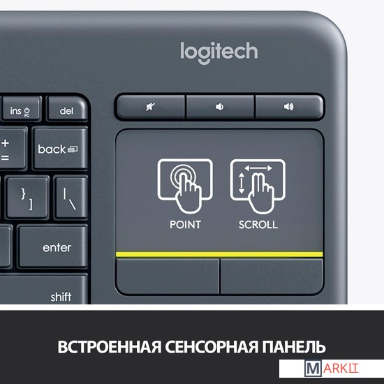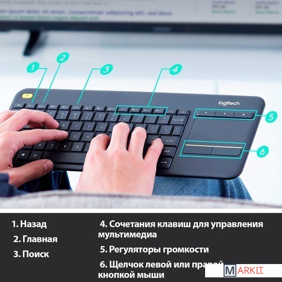 Удобные, бесшумные клавиши и большая сенсорная панель (3,5 дюйма) облегчают навигацию.Радиус действия беспроводной связи — 10 метров (33 фута). Совместимость клавиатуры с мультимедийными устройствами для телевизора.