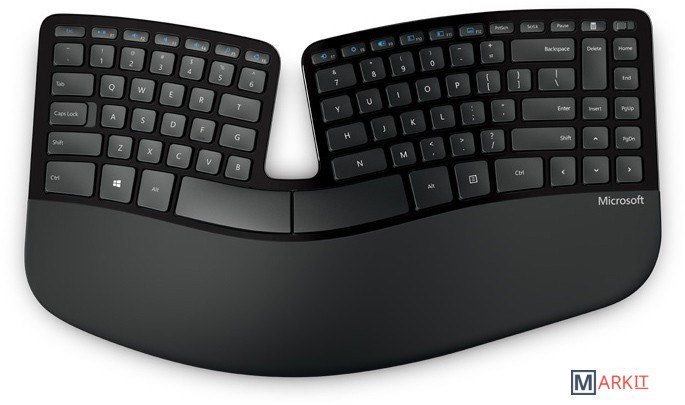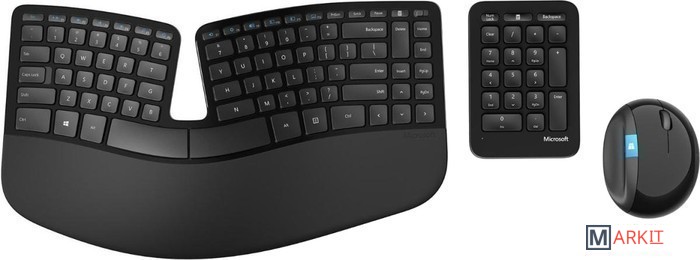 Комплект клавиатуры, мыши, цифрового блока.Конструкция Sculpt Ergonomic Desktop основана на современных принципах эргономики: разделенная клавиатура позволяет держать руки в расслабленном положении, а мягкая подкладка для запястий поддерживает их. Выгнутая форма клавиатуры позволяет уменьшить угол изгиба запястий, который может приводить к болям и сокращению мобильности.Sculpt Ergonomic Desktop обеспечивает повышение продуктивности работы, делая ее максимально эргономичной. Позволяя расслабить руки и расположиться удобнее, этот комплект избавляет вас от стресса, напряжения и дискомфорта, которые вы могли испытывать при работе с другими клавиатурами и мышами.Раскладка Natural Arc следует контурам пальцев, упрощая работу с клавиатурой. Обратный наклон позволяет расположить клавиатуру под нейтральным углом. Кроме того, форма мыши обеспечивает максимальный комфорт для запястья. Кнопка Windows обеспечивает быстрый доступ к меню "Пуск" в системе Windows.