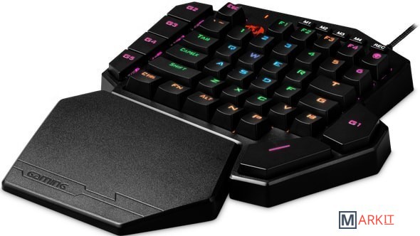 Игровая клавиатура для одной руки, для профи и тех, кто собирается ими стать! Механические переключатели OUTEMU Blue, увеличенный ресурс нажатия клавиш, кнопка записи и редактор макросов, встроенная память, удобная текстурная подставка под запястье, а также стильный дизайн!Программируемая RGB подсветкаВстроенная память сохраняет настройки режимов подсветки и макросыВлагоустойчивая конструкция клавиатуры