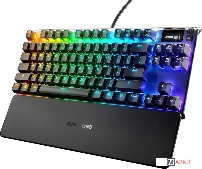 Данная игровая клавиатура снабжена дисплеем OLED Smart, благодаря которому можно управлять настройками клавиатуры без необходимости переключаться между окнами на компьютере. Также присутствует функция оповещений Discord, Tidal и Spotify в режиме реального времени и возможность сохранения до 5 настраиваемых макросов.