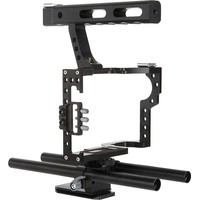Клетка Viltrox VX-11 отличается от аналогов своей универсальностью, что позволяет использовать её с большим количеством камер типа Sony A7, A6, Panasonic GH4/5 и прочими, со схожими габаритами.Матричный вид позволяет закреплять дополнительное оборудование по периметру в любую из множества сот с резьбой 1/4 или 3/8 дюйма, а так же на холодный башмак, расположенный на рукоятке. Фиксатор проводов позволит надежно зафиксировать соответствующий кабель на входе в камеру, предотвратив нежелательный дисконект или повреждение портов камеры.Также в комплекте прилагаются направляющие длиной 300 мм и универсальное базовое крепление к ним. Все элементы изготовлены из авиационного алюминия, прочного и надежного, но легкого, что весьма важно при продолжительной работе с большим количеством оборудования.