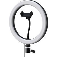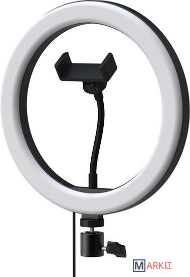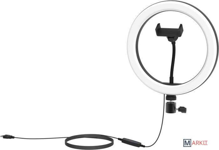 Кольцевая лампа диаметром 26см белого света, имеет 9 уровней яркости и 3 цветовых температуры: теплый, нейтральный и холодный свет. Предназначена для установки на штатив (в комплект не входит) . Питание от USB-порта.