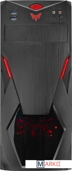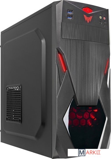 Компьютерный корпус для сборки игрового ПК. Обладает ярким дизайном, который подчёркнут красной светодиодной подсветкой.