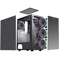 Прочное шасси из стали с качественной завальцовкой.Разъем USB 3.0, одно посадочное место для SSD.Боковая панель из акрилового стекла. Передняя панель из закаленного стеклаСъемная корзина для HDD, кабельные каналы.Блок питания в отдельном воздуховоде, фильтр забора воздуха сверху на магните.В корпусе установлено 4LED вентилятора 12 см.