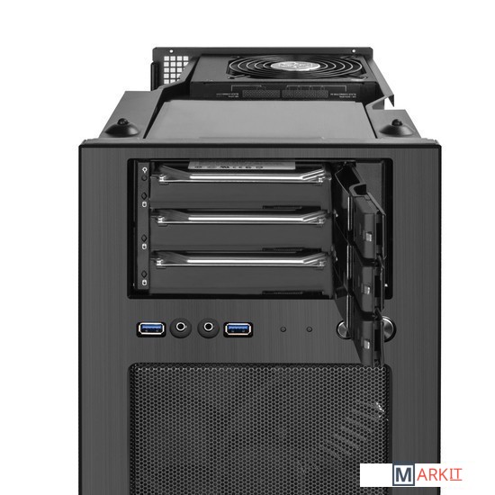 Поддержка трёх накопителей 3,5" SAS / SATA со скоростью до 12 Гбит/с и возможностью горячей замены (зависит от скорости передачи жестких дисков)■ Поддержка одного накопителя 2,5" и до восьми накопителей 3,5”■ Регулируемый светодиодный индикатор накопителя и скорости вращения вентилятора■ Вентилятор Air Penetrator 180 мм в комплекте■ Съемный лоток материнской платы и верхняя панель■ Легкосъемные фильтры■ Большое пространство для прокладки кабелей за лотком материнской платы■ Поддерживает установку сторонних процессорных кулеровОблегчите процесс установки, обновления или снятия деталей, просто сняв верхнюю панель и лоток материнской платыОдин вентилятор Air Penetrator 180 мм в комплекте и крепление для 120-мм вентилятора сзади для отличного направленного охлаждения системыРегулируемый держатель кулера процессора помогает распределить вес и предотвратить повреждение сокета материнской платыПылевой фильтр сверху и спереди Помогает предотвратить снижение производительности, вызванное накоплением пыли с течением времениПоддержка карт расширения длиной до 13,25" (336 мм), Ограничение по ширине – 6,69" (169 мм)