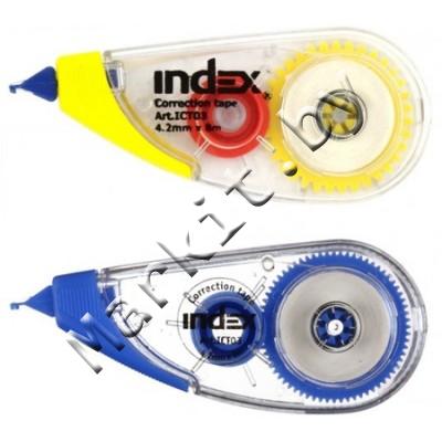 Корректирующий роллер Index, размер ленты 4,2 мм x 8 м, корпус ассорти, в ПЭТ-упаковке Код: 33447