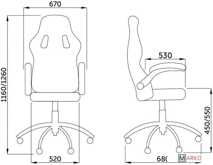 Ширина 68 см  (крестовина)