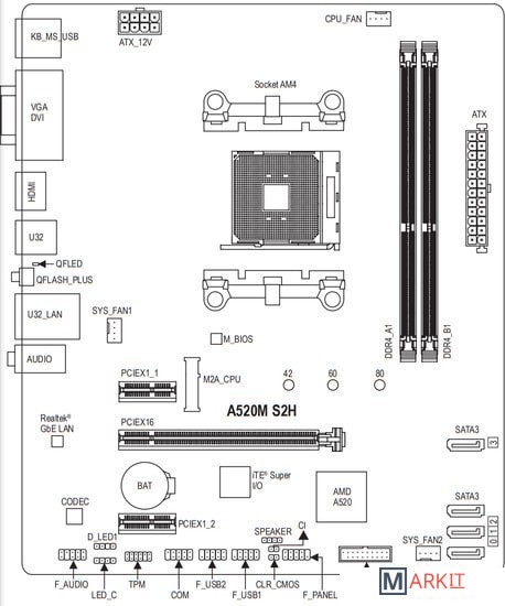 Markit » Материнские платы » Материнская плата Gigabyte A520M S2H (rev. 1.0)