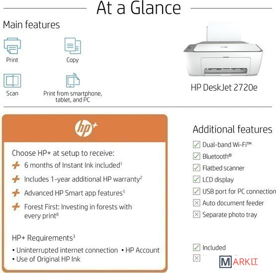 Печатающие устройства HP для дома или небольшого офиса Deskjet Ink Advantage отличаются компактными размерами и элегантным дизайном. Печать цветных документов, любимых фотографий, сканирование и копирование стали простым и доступным.При первом запуске устройства, его необходимо зарегистрировать на сервере компании выбрав бесплатную подписку «HP+» в соответствии с инструкцией.