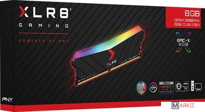 Оперативная память PNY XLR8 Gaming Epic-X RGB 8GB DDR4 PC4-25600 MD8GD4320016XRGB Код: 77402
