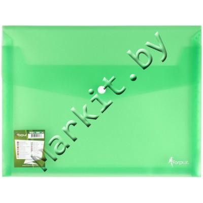 Папка-конверт пластиковая на кнопке Forpus, толщина пластика 0,35 мм, прозрачная зеленая Код: 32883