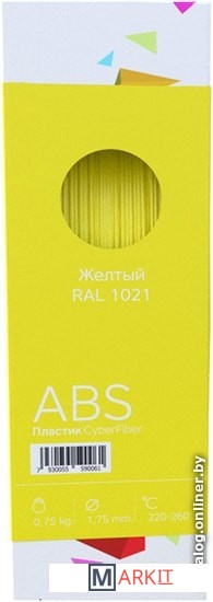 Markit » Расходные материалы для 3д принтера » Пластик CyberFiber ABS 1.75 мм 750 г (желтый)