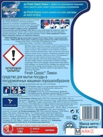 Markit » Средства для посудомоечных машин » Порошок для посудомоечной машины Finish Classic Лимон (2.5 кг)
