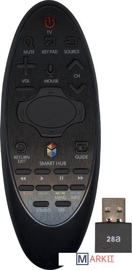 Универсальный пульт SR-7557 для телевизоров Samsung со SmartTV.Подключите USB ресивер в один из USB-разъемов телевизора. На экране появится сообщение о подключении устройства. Нажмите одновременно кнопки "Return2" и "Guide3" и удерживайте нажатыми 3 секунды. Светодиод на пульте загорится. Потом направьте пульт на ресивер, светодиод моргнёт 3 раза. Настройка завершена. У некоторых телевизоров не все USB порты поддерживают данный пульт. Если SMART REMOTE не заработал, попробуйте другой порт. Нажмите и удерживайте для полного выхода из меню. Интерфейс отображения списка каналов (GUIDE) отличается от оригинального, он отображается менее подробно. Все функции дублируют оригинальные: SMART-HUB, M-SCREEN, SEARCH, KEYPAD и SOURCE. Курсор отключается автоматически, если не выполняется ни каких действий в течение 7 секунд. Для включения курсора снова нажмите кнопку MOUSE. Пульт является заменой оригинала, он не имеет тач-пада и функции голосового управления. 4. Заменяет следующие оригинальные пульты:BN59-00901A, BN59-00937A, AAS0-00560A, BN53-00938A, AA59-00570A, BN59-00940A, BN59-00860A, AA59-00581A, BN59-00936A, AA50-00582A, BN59-00507A, BN59-00939A, BN59-00512A, BN59-01005A, AA58-00602A, BN59-00942A, BN59-01012A, AA59-00603A, BN59-01014A, BN59-00529A, BN58-01015A, BN59-01012A, BN59-00557A, BN58-01040A, BN59-00559A, AA50-00638A, BN59-01069A, BN59-01078A, BN59-01175N, BN59-00603A, AA50-00714A, BN59-00604A, AA50-00741A, BN59-00609A, AA50-00742A, BN59-01178C, BN59-01178F, BN59-00681A, AA50-00703A, BN59-00683A, AA50-00706A, AA59-00796A, BN59-011898, BN59-00684B, AA50-00797A, BN59-01198C, BN50-006854, AAS0-00799A, BN59-0119BC, AA50-00801A, BN59-01198D, BN59-00686A, AA50-00800A, BN59-01198Q, BN59-00687A, BN59-01199G, BN59-00705A, BN59-00706A, BN59-01248A, AA59-00370B, BN59-01268D, AA59-00382A, BN59-01268E, AA59-00399A, BNS9-00859A, BN59-01298L, BN59-00863A, BN59-01305A.