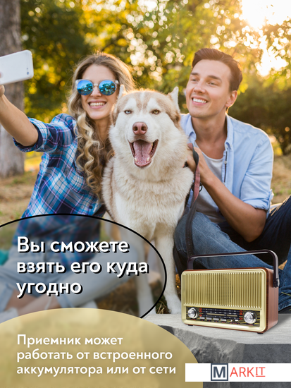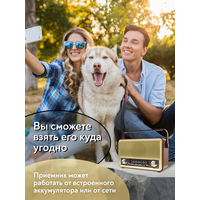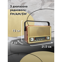 Радиоприемник MIRU SR-1028 коричневого цвета имеет ретро дизайн, простой функционал и обеспечивает приём сигналов в диапазоне FM, AM и SW. Аналоговый способ настройки частоты предполагает более точное и быстрое улавливание нужного канала. Для улучшения качества сигнала у радиоприемника имеется поворотная телескопическая антенна. Радиоприемник SR-1028 может работать как от сети 220В, так и аккумулятора. Устройство оснащено удобной, складывающейся ручкой, благодаря чему его будет легко переносить. Органы регулировки громкость и смена диапазонов расположенны на передней панели приемника. Также предусмотрено проигрывание с USB и microSD накопителей. Данный радиоприемник отлично подойдет для туристов, дачников и просто любителей отдыха на природе